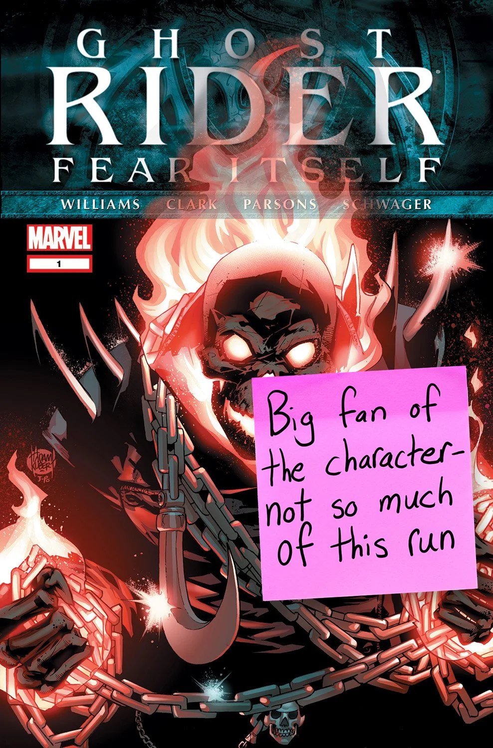Williams brings a fresh angle, focusing more on Blaze than the Rider. The tone’s a little looser, with some solid character work and cool ideas sprinkled through it, but it’s not perfect by any means. It tries to do something different, and maybe there should be some respect there. The story’s got range. It’s not just fire and chains and death; there’s some character depth here, especially with Blaze. Williams focuses more on the man than the demon, and that does pay off, in my opinion. The tone is darker but not overly deep, and there are even some jokes in there that I didn’t hate. Not everything works (looking at you, fake Constantine), but there’s an obvious attempt in every chapter. I was also a fan of the chaos that Mephisto brought to the story.